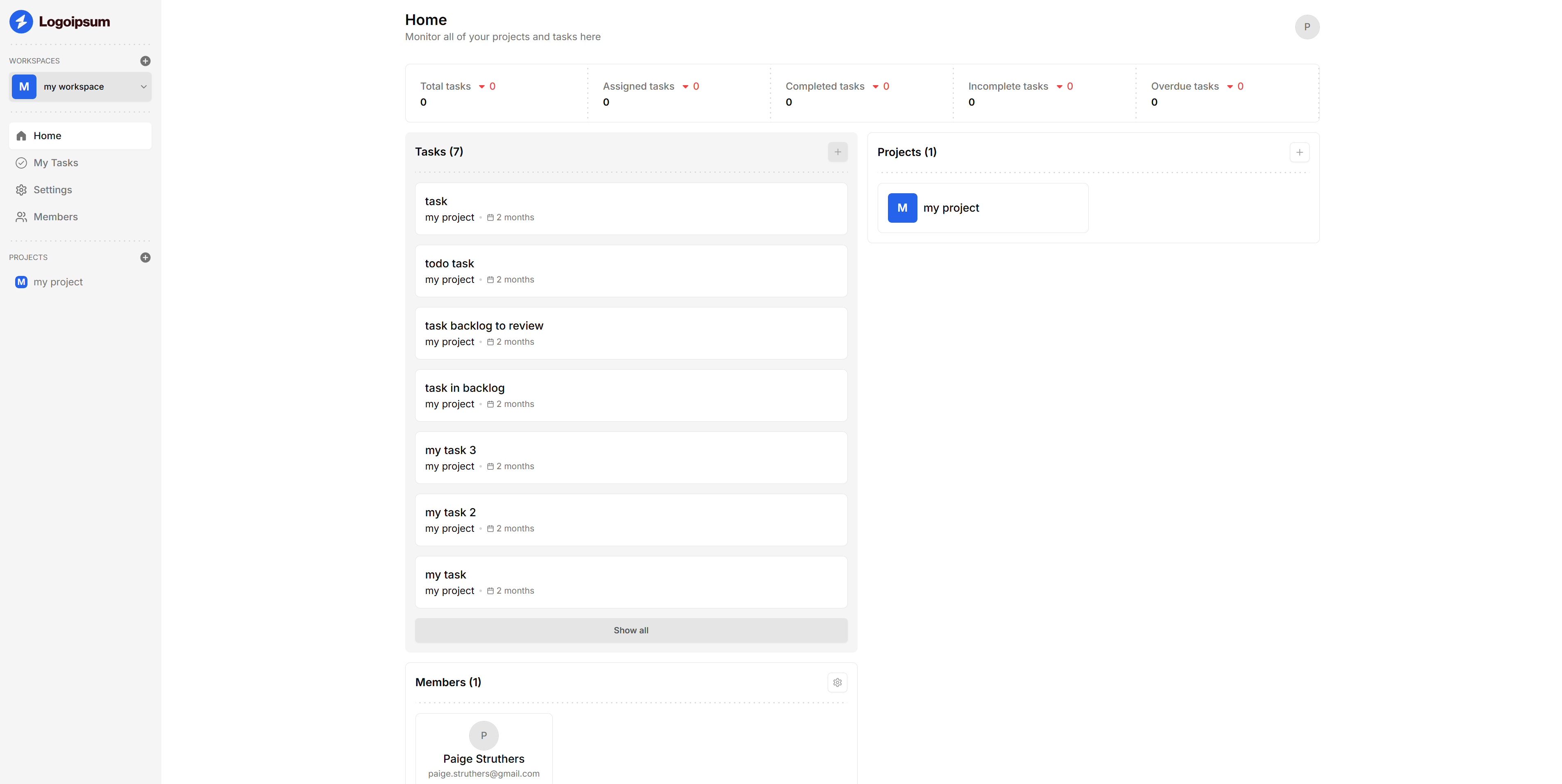 A project management platform that allows users to visualize a project's workflow. Main features include authentication, workspace and task management, an invite system, project analytics, and different task views including a calendar view and kanban board.